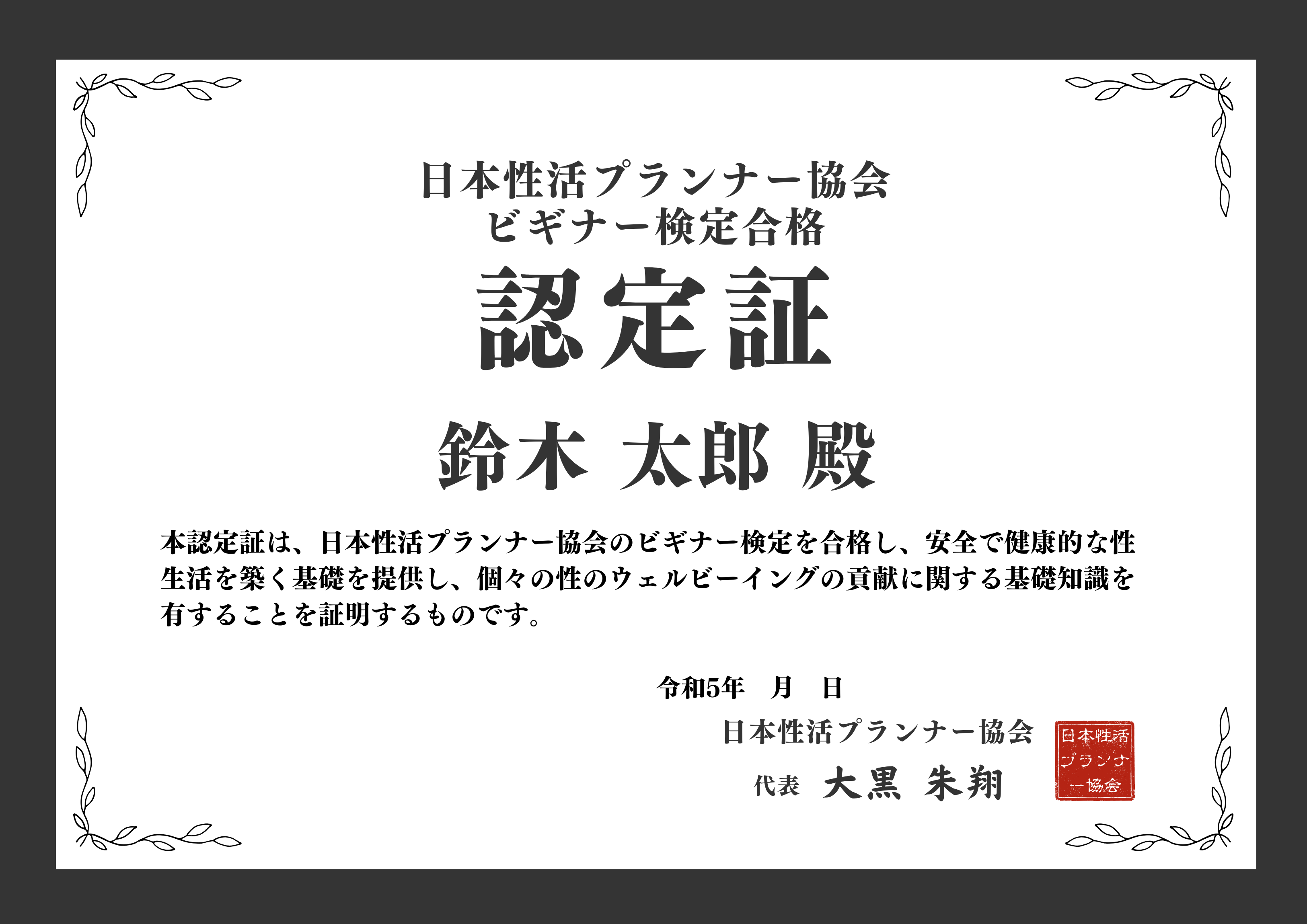 性活プランナーのビギナー検定は、基礎的な性知識と性コミュニケーション知識を身につけたい全ての人を対象としています。